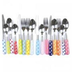 Un set de 16 couverts colorés : 4 fourchettes, 4 cuillères à soupe, 4 couteaux et 4 cuillères à dessert