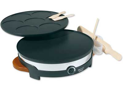 Pour une crêpes party en famille, entre amis, pour un diner, un gouter…, la crêpière Lagrange permet de réaliser 7 petites crêpes ou une grande ( 35 cm) à garnir de salé ou de sucré.