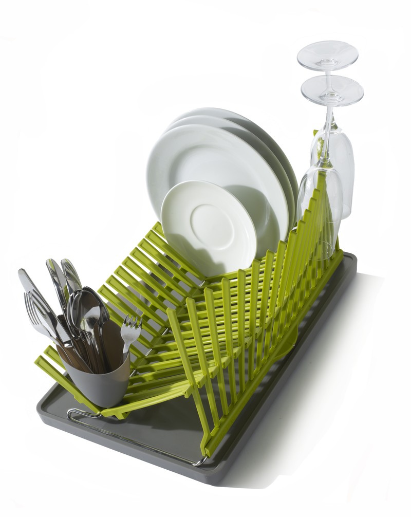 Elégant et astucieux, l’égouttoir à vaisselle Black Blum se plie entièrement à plat pour un rangement facile.