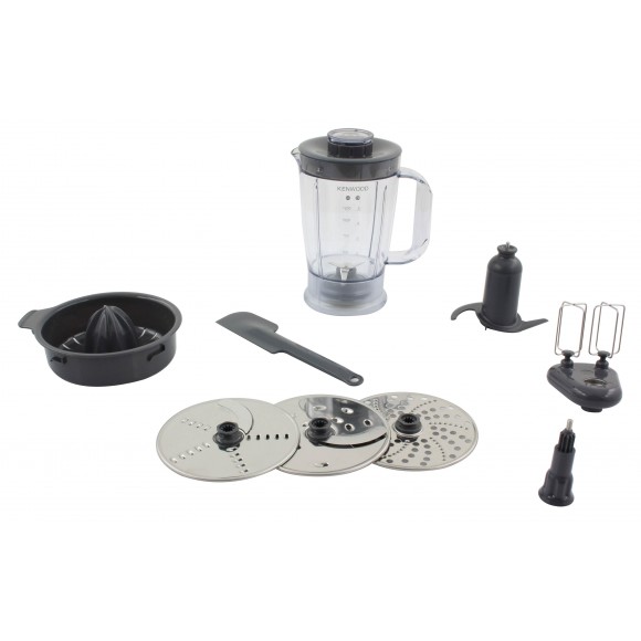 Mixeur acrylique 1.2 L, couteaux en acier inoxydable, fouet en métal, 3 disques râper / émincer, pétrin, presse-agrumes