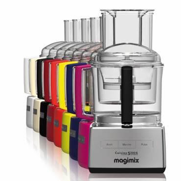 Avec le robot multifonctions 5200XL Magimix la cuisine devient un jeu d’enfant : carottes râpées, concombre, pâte à pizza, gâteaux, pâte à crêpes, soupes, sorbets, julienne de légumes….